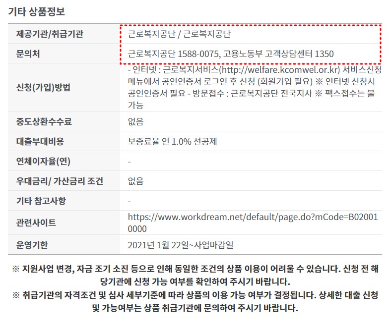 직업훈련생계비 융자(직업훈련생계비) 신청에 대해서 아래의 내용을 확인하시기 바랍니다.
